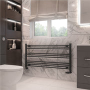 - A contemporary straight towel radiator range which comes in chrome, matt anthracite, matt cobalt blue, matt black, matt grey, gloss white and matt white finishes.